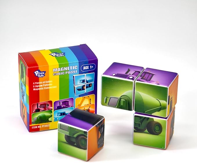 Magnetic Cubes for Toddler, 1.65 inch Large Building Blocks Tiles, Construction Vehicles Puzzles Game for Toddlers, STEM Educational Learning Toys for Boys & Girls Ages 1 2 3