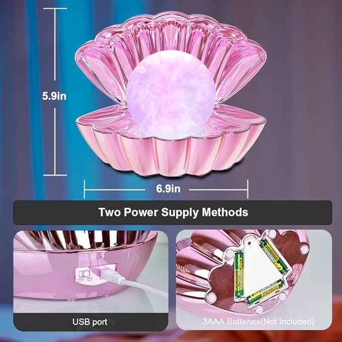 - 🌈 LED Shell Pearl Night Light, Color Magician 🌈 —— It is inspired by seashells, with LED lights dancing in a loop. The colorful RGB light is like an emotional palette, adding a rare touch of vitality and warmth to your home environment. Whether it's a cozy bedroom, elegant living room, tranquil study room, lively bar, baby room guard, joyful daycare center, peaceful apartment, or dazzling stage for birthday parties, it can easily handle and create a unique atmosphere.