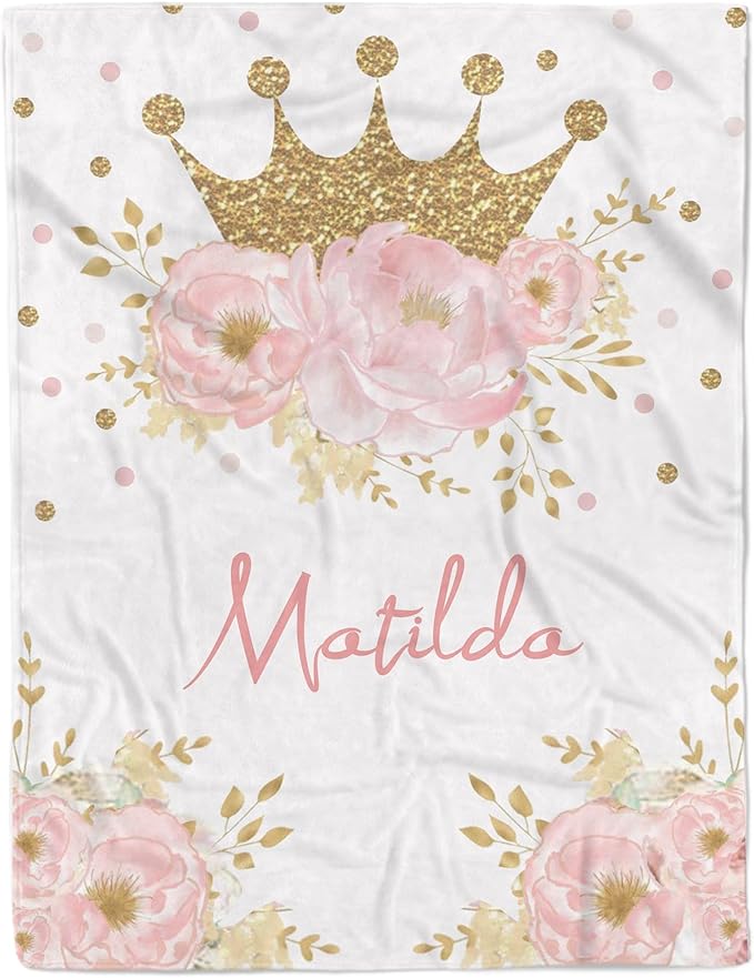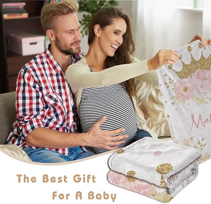 Personalized Crown Blanket for Baby Girl Custom Gifts for Baby Shower Birthday Christmas Customized Name Blanket for New Mom Newborn Gifts