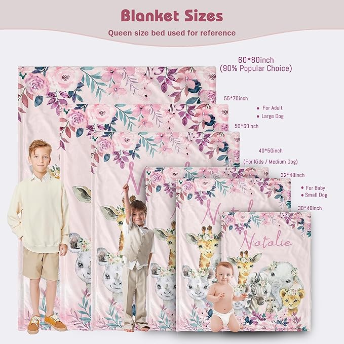 Personalized Baby Blanket with Name Custom Animals Blanket for Infant Toddler Newborn Customized for Boy Girl Birthday Christmas