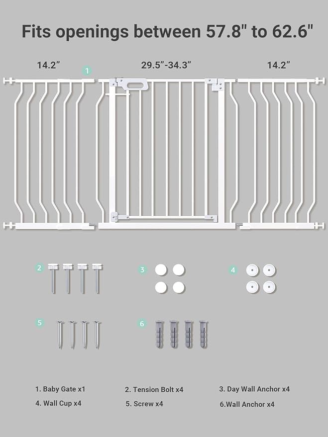 - ๐ ๐ข๐ญ๐ฌ ๐๐๐ซ๐ข๐จ๐ฎ๐ฌ ๐๐ข๐๐ญ๐ก ๐๐ฉ๐๐ง๐ข๐ง๐ ๐ฌ: Our adjustable baby gate is the ideal home safety solution for your little one. Tailored for doorways and stairways, it accommodates openings from 57 to 62 inches in width. Trust GROWNSY to offer both safety and convenience for your home.