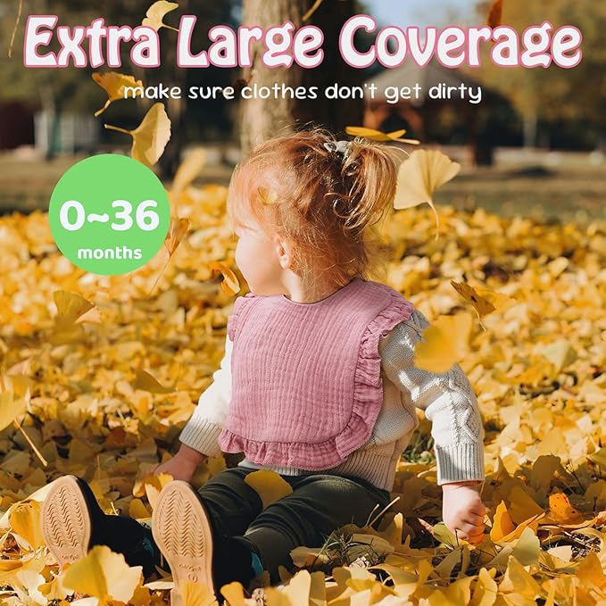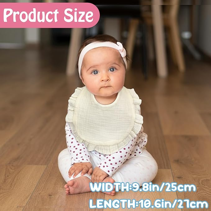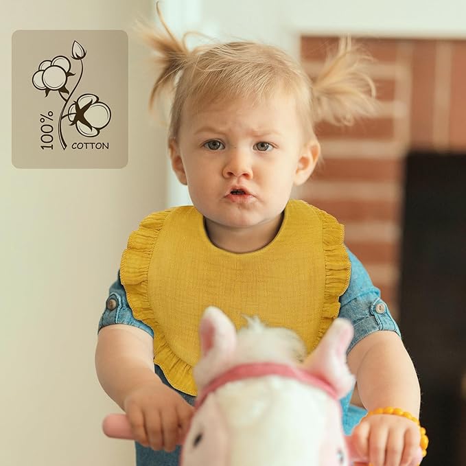 - Muslin Baby Bibs: Indulge your baby in unparalleled comfort with our 100% cotton muslin baby bibs; The soft, breathable fabric gently cradles your baby's delicate skin, providing all-day comfort and protection from drool, spit-up, and milk spills