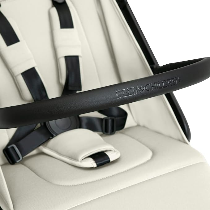 Delta Children Icon Ultra Compact Lightweight Everyday & Travel Stroller - One-Hand Fold - Only 15.6 Pounds - Fits in Overhead Compartments - Greenguard Gold Certified - Multi-Position Recline, Cream