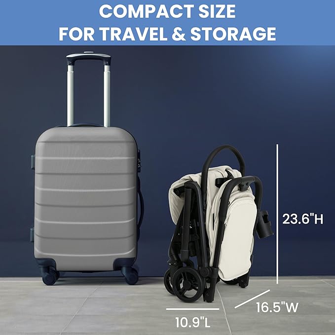 - LIGHTWEIGHT & COMPACT: This stroller only weighs 15.6 lbs. | TSA approved to easily fit in overhead compartment, stroller folds within seconds | Assembled: 32.5"L x 16.5"W x 40.2"H | Folded: 10"L x 16.5"W x 23.6"H