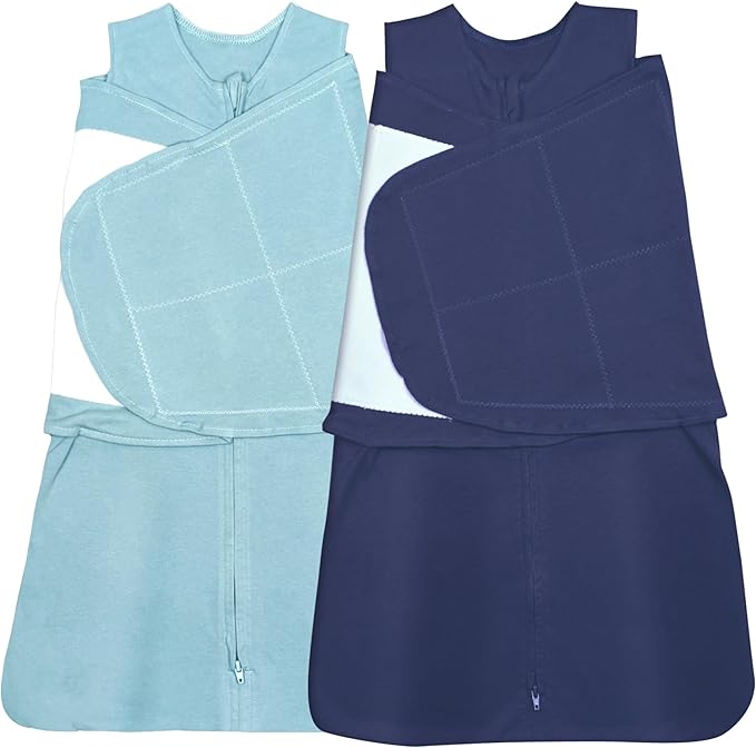 Baby Sleep sack Swaddle,Swaddles 3-6 Months,3-Way Adjustable Wearable Transition Blanket 100% Organic Cotton 2-Piece,12-18 lbs,1.0 TOG(Cyan&Navy Blue)
