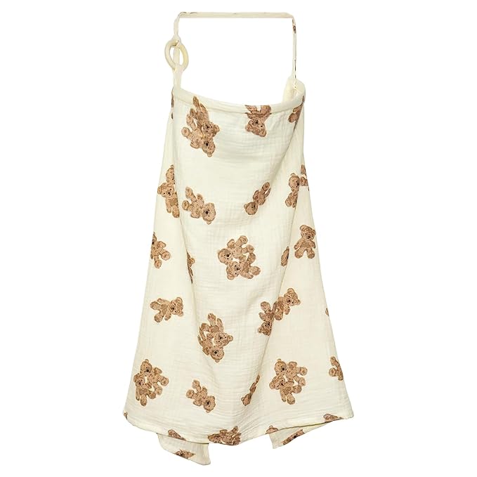 Muslin Nursing Cover for Baby Breastfeeding, Breathable 100% Cotton Privacy Nursing Covers, Multi Use Car Seat Stroller Cover (Bear-2)