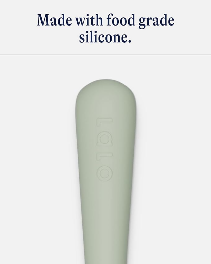 Lalo Little Spoon Set - 2 Piece Baby Spoons Set for Infants & Babies - Made From Food Grade Silicone Dishwasher Safe - Baby Feeding Essentials for Early Stage Mealtime - Sage