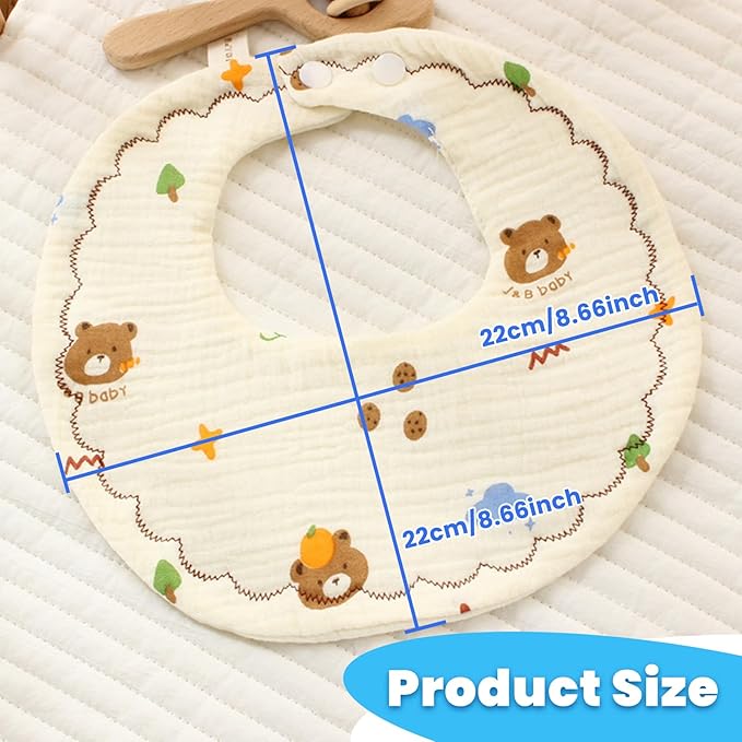 - Super Absorbent Baby Bibs – Ideal for Drooling & Teething Built with multi‑layer muslin cotton, our baby bibs are highly absorbent, perfect for drooling, nursing, and teething babies. For best care, air dry to maintain softness (100% cotton may shrink in a dryer, but dries quickly thanks to the special fabric).