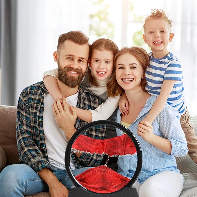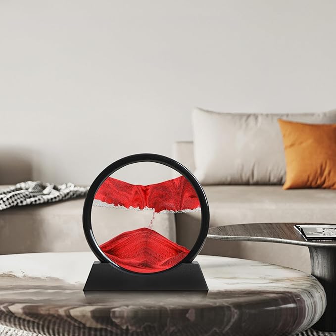 Moving Sand Art Liquid Motion, 3D Deep Sea Sandscape Color Quicksand Decor, Round Glass Moving Sand Art Picture Relaxing Desktop Home Office Work Decor (Red, 7 inch)