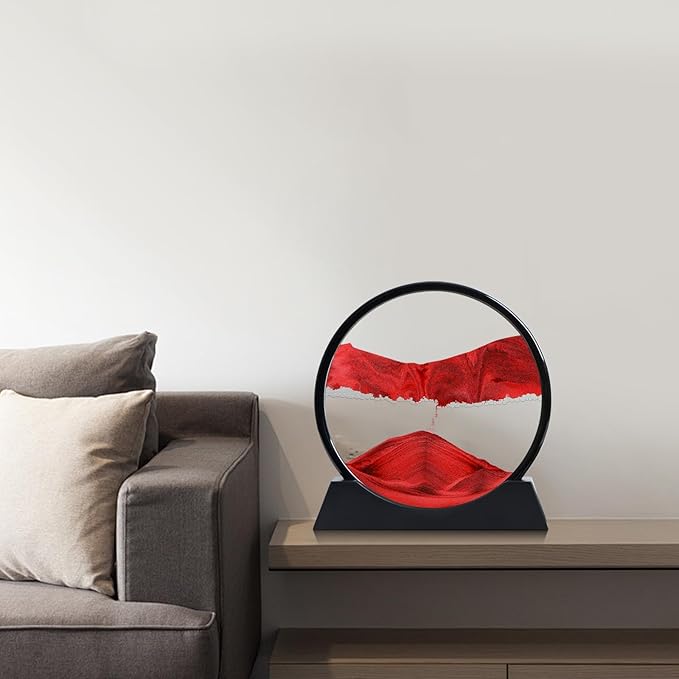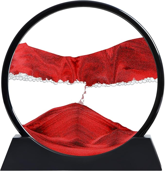 Moving Sand Art Liquid Motion, 3D Deep Sea Sandscape Color Quicksand Decor, Round Glass Moving Sand Art Picture Relaxing Desktop Home Office Work Decor (Red, 12 inch)