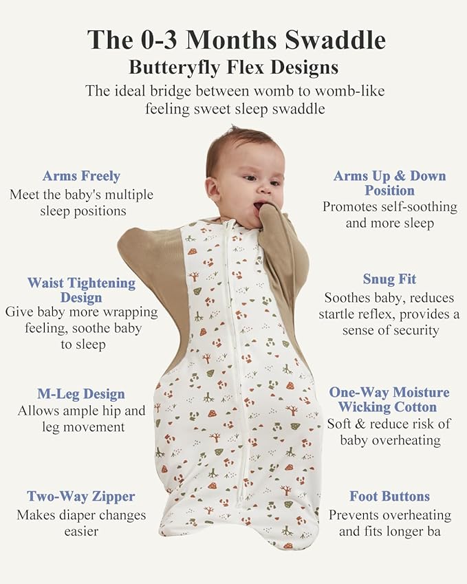 - 𝗪𝗼𝗺𝗯-𝗹𝗶𝗸𝗲 𝗘𝗻𝘃𝗶𝗿𝗼𝗻𝗺𝗲𝗻𝘁 𝗕𝘂𝘁𝘁𝗲𝗿𝗳𝗹𝘆𝗛𝘂𝗴 𝗗𝗲𝘀𝗶𝗴𝗻: Experience KIDIRA's innovative ButterflyHug design. The baby swaddles upper body, replicating the cozy environment of the womb, making babies feel secure and facilitating peaceful sleep. New mothers can rest easy knowing the design exclusively encases the baby's body, ensuring no risk of covering their mouth or nose.