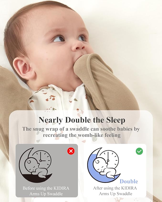 - 𝗦𝗹𝗲𝗲𝗽 𝗶𝗻 𝗣𝗿𝗲𝗳𝗲𝗿𝗿𝗲𝗱 𝗣𝗼𝘀𝗶𝘁𝗶𝗼𝗻 𝘄𝗶𝘁𝗵 𝗔𝗿𝗺𝘀 𝗙𝗿𝗲𝗲𝗱𝗼𝗺: With KIDIRA's baby swaddles for 0-3 months, babies can move and position their arms freely, letting them self-soothe by finding the most comforting pose, whether arms up, stretched to the sides, hands on chest, or flat down. Say farewell to the startle reflex, ensuring longer, more peaceful sleep. Plus, our unique design means no more arms out, helping to prevent those pesky facial scratches!