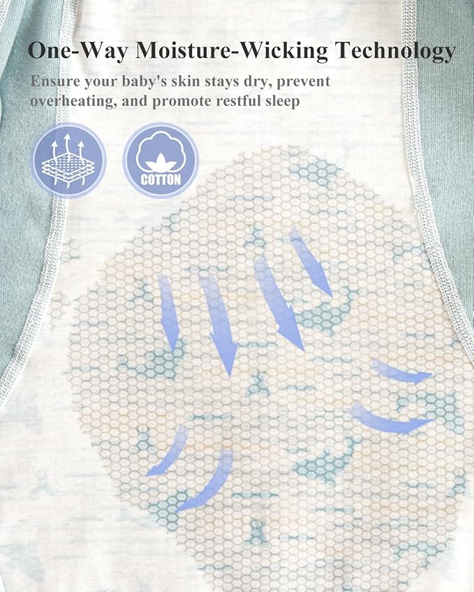- 𝗔𝗱𝘃𝗮𝗻𝗰𝗲𝗱 𝗢𝗻𝗲-𝘄𝗮𝘆 𝗠𝗼𝗶𝘀𝘁𝘂𝗿𝗲-𝘄𝗶𝗰𝗸𝗶𝗻𝗴 𝗧𝗲𝗰𝗵𝗻𝗼𝗹𝗼𝗴𝘆: KIDIRA's arms up swaddle utilizes advanced one-way moisture-wicking technology. The inner layer boasts a unique honeycomb-shaped water-guiding channel. Should your baby sweat or become damp, this channel swiftly absorbs and transfers the moisture to the swaddle's outer layer, ensuring the baby's skin remains dry and breathable. A peacefully and comfortably sleeping baby.