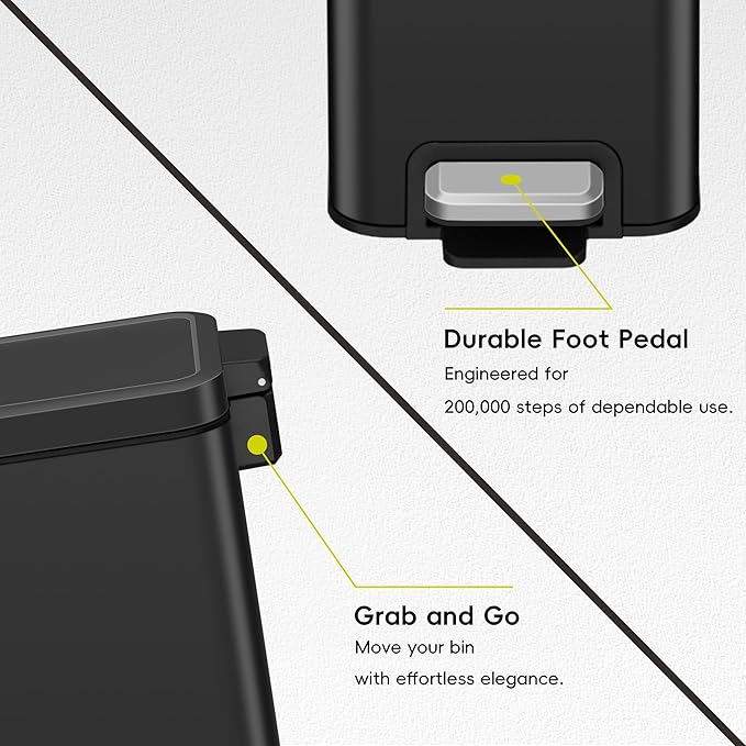 - FINGERPRINT-RESISTANT & EASY TO CLEAN: The stainless steel finish resists fingerprints and smudges, ensuring your trash can remains spotless and clean with minimal effort.