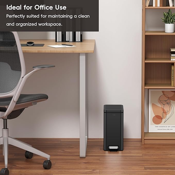 - SPACE-SAVING DESIGN: With dimensions of 11.2''L×6.2''W×12.4''H and a 1.6-gallon capacity, this trash can fits perfectly in tight spots like bathrooms or small corners, adding style without taking up much space.
