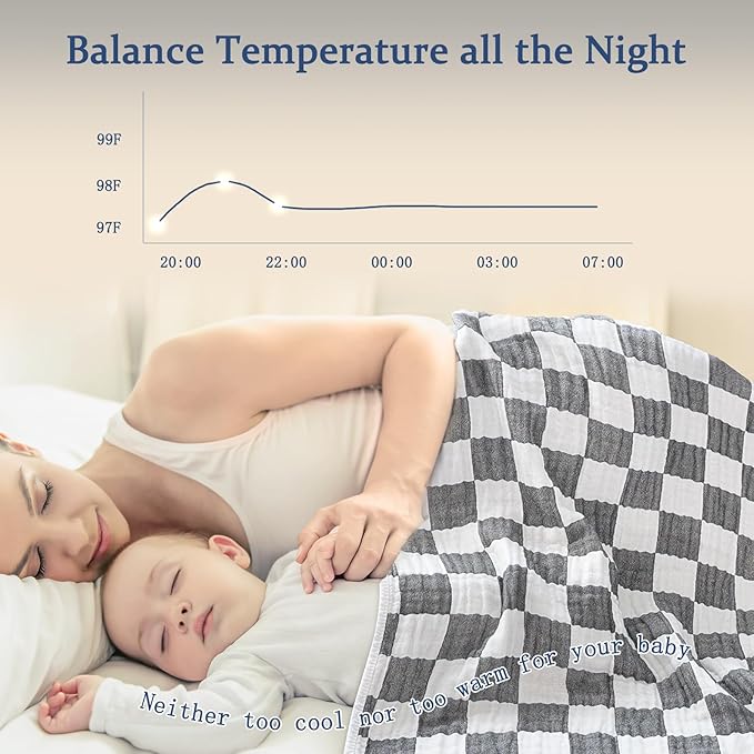 - Softer & Long-Lasting: Our muslin baby blanket is crafted with a blend of 70% cotton and 30% rayon which is softer, lighter,durability and skin-friendly than other organic cotton. Its six layers yarn textile process providing enhanced wear resistance and sweat absorption
