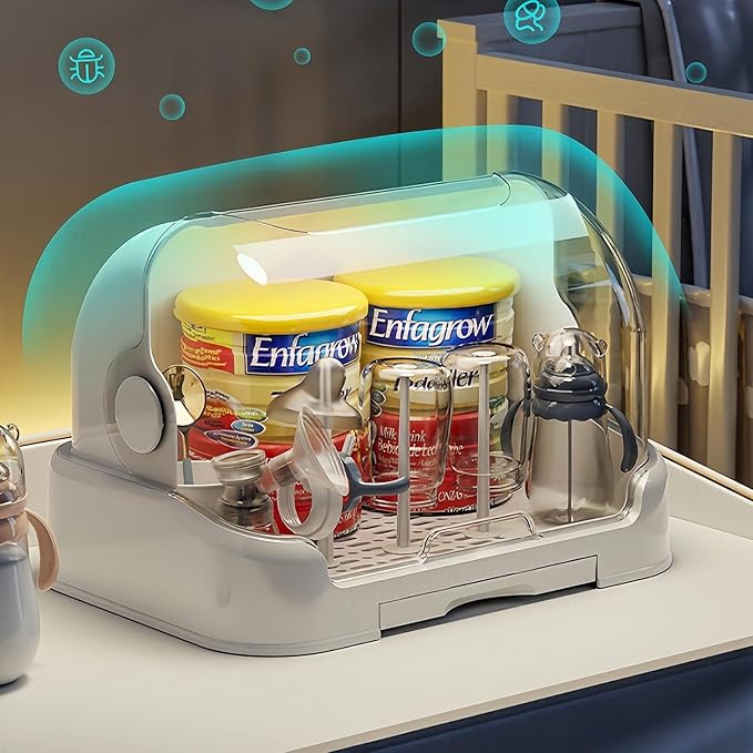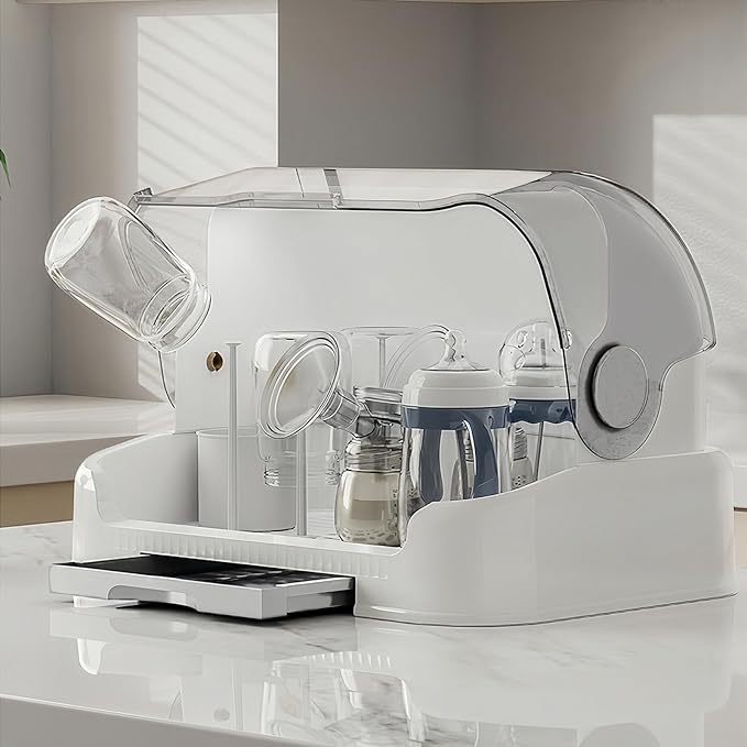 Zdolmy Baby Bottle Drying Rack Storage, Nursing Bottle Storage Box Organizer with Cover, Portable Kitchen Cabinet Organizer, Durable countertop Dryer (White)