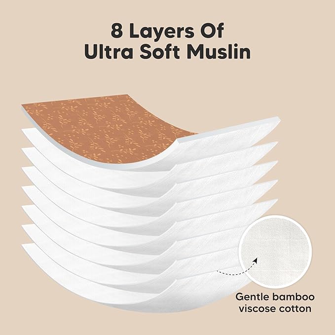 5-Pack Muslin Burp Cloths Baby Boy, Girl - Very Absorbent Baby Burp Cloth Rags, 8-Layers Viscose Derived from Bamboo Cotton Muslin Towel, Super Soft Spit Up Rags, No Shrink Washcloths (Fall Spores)
