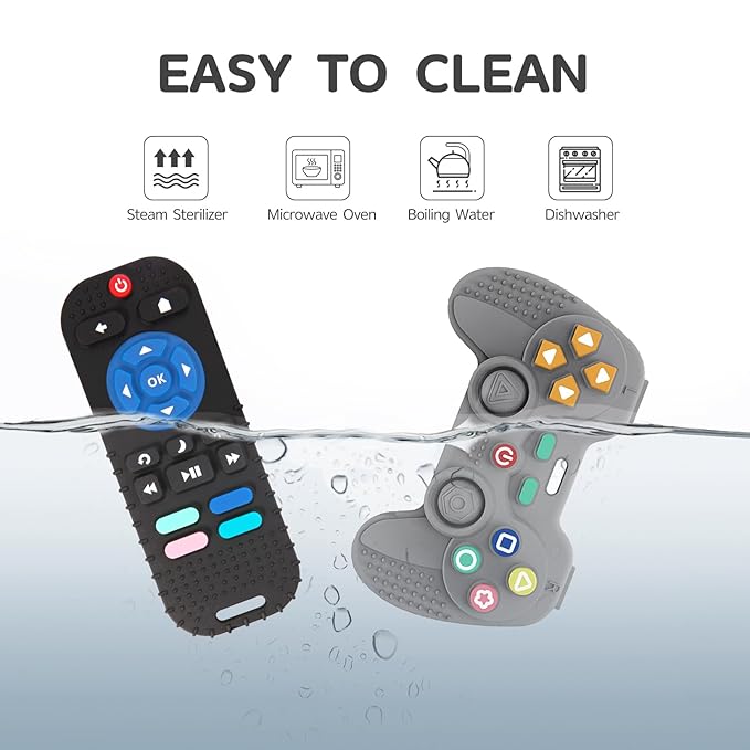 - 【Easy to Clean】Infant Teething toys for babies 6-12 months No Deformation, No Fading, More Assured of Biting. The Remote Control Teether for Baby can be used in dishwashers, refrigerators, also freezable. Recommended that you wash it and boil it for sterilization before use.