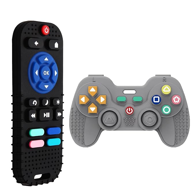 - 【Safe High-Quality Material】Baby Remote Control Toy is made of Food Grade Silicone, Non-toxic, BPA-free, Durable for biting and chewing. This Baby Chew Toys 3-6 months is Soft, Smooth surface, No burrs. The soft and bendable silicone material can avoid damaging your baby's gums.