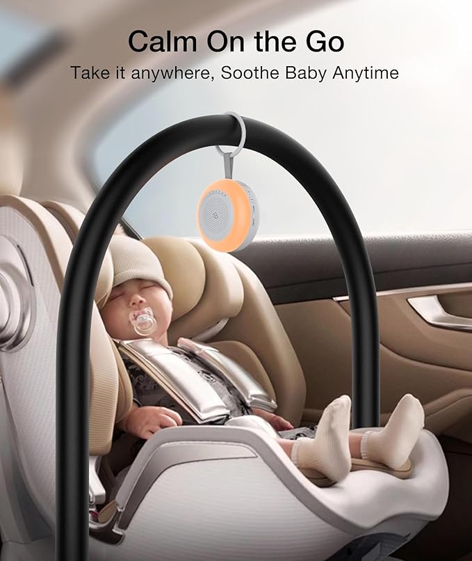 - 【Travel Sound Machine】 This portable white noise machine ensures better sleep wherever you go. It’s compact and lightweight—ideal for travel. With a strap and hook, attach it easily to strollers, car seats, or luggage. Perfect for car rides, walks, hotel stays, and business trips.