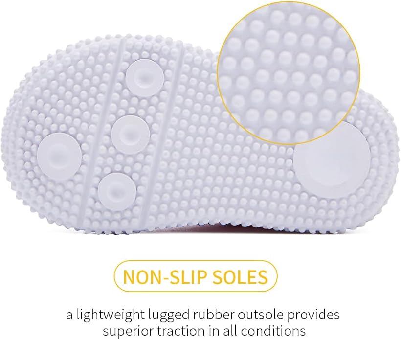 - Non-slip Soles: rubber soft spikes and sensory pods under outsoles prevent your child from slipping