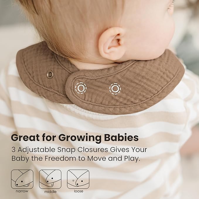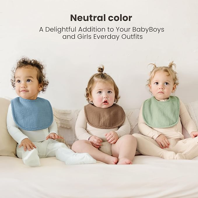 - Soft & Absorbent: These baby bibs are made with a 100% cotton muslin front and a polyester comfort fleece back for superior absorbency and a soft, skin-friendly feel. They effectively soak up drool and spit, keeping both you and your baby clean and dry-no more wet clothes