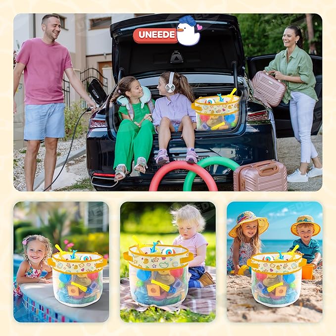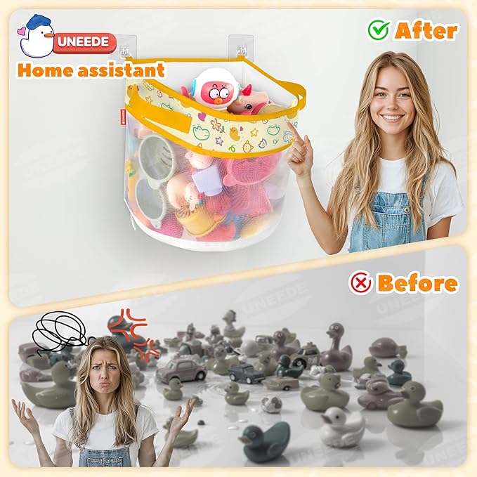 - 【UNEEDE Bath Toy Storage Design】Here you would see is our UNEEDE most successful 4.15 gallon large bathroom toy storage.We made it We made it can not only hang on the wall, but also stand on its own on the floor,which means you could carry it outside with your toys.