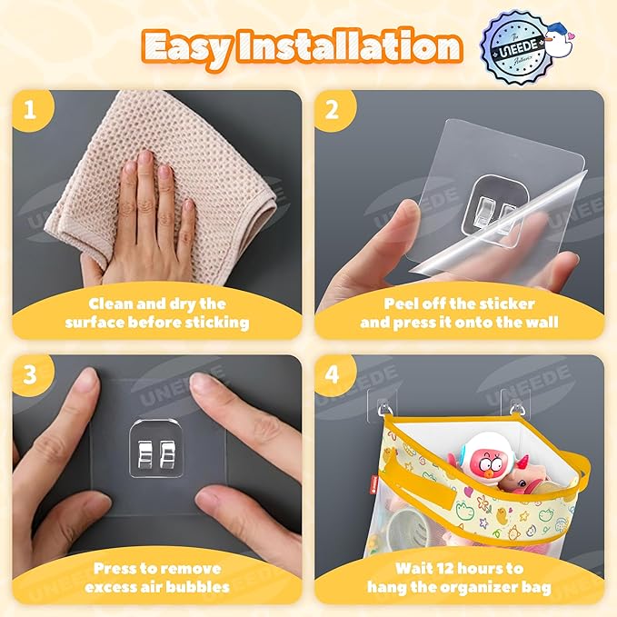 - 【Why We Choose Sticker But Not Suckers】Greater load capacity, longer to use.Unlike suction cups that tend to slip off due to too much humidity, the stickers stay firmly on the wall.It also offers a weight capacity of up to 22 pounds, allowing you to place more toys. For this reason we have prepared a detailed video & photo installation tutorial. It is convenient for you guys to be able to install the organizer in the exact location.