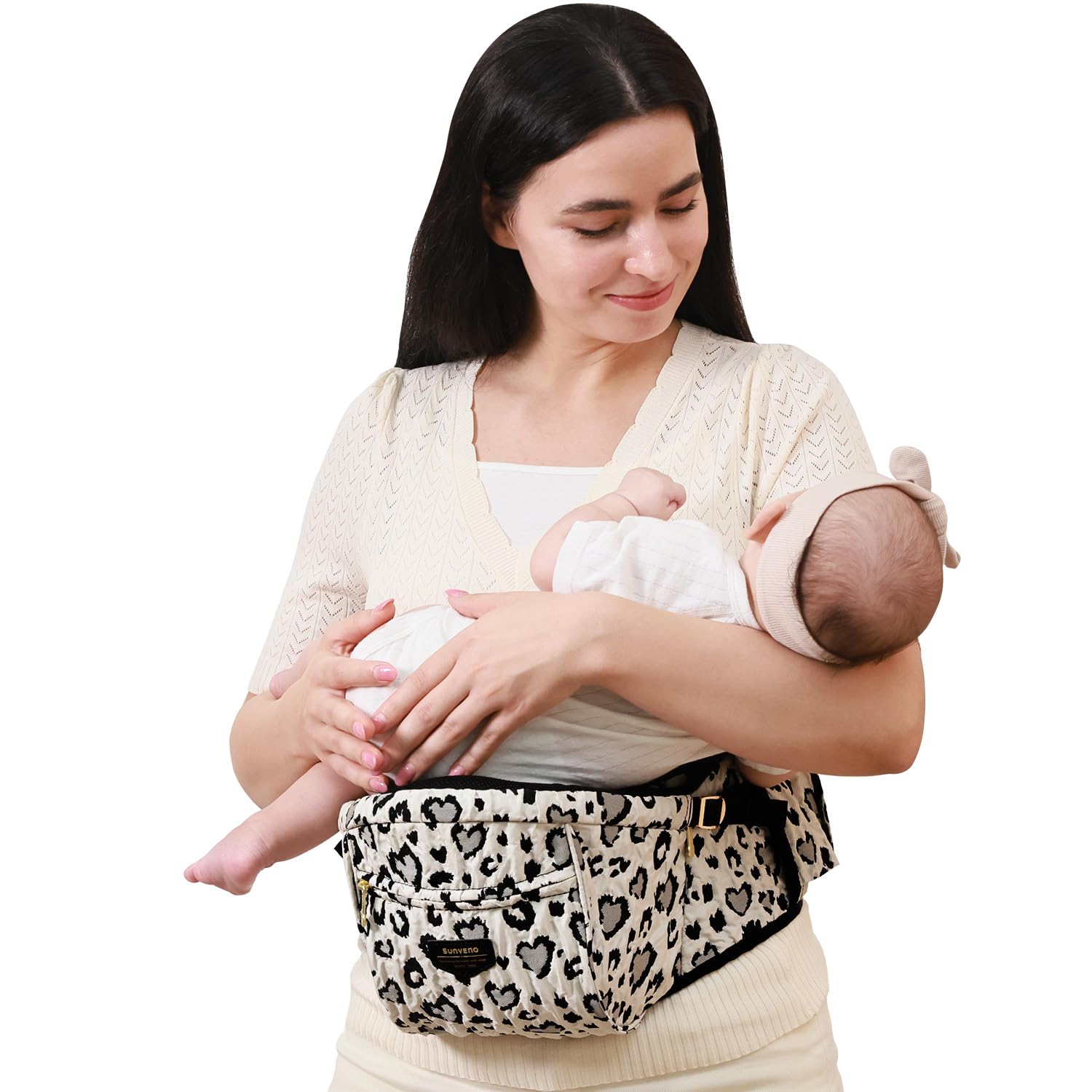 SUNVENO Baby Hip Carrier with Hip Seat, CPC-Certified, Ergonomic Infant Carrier for Newborns & Toddlers up to 45 lbs, Adjustable Waistband, Multiple Pockets, All-Season, Grey,Leopard Print