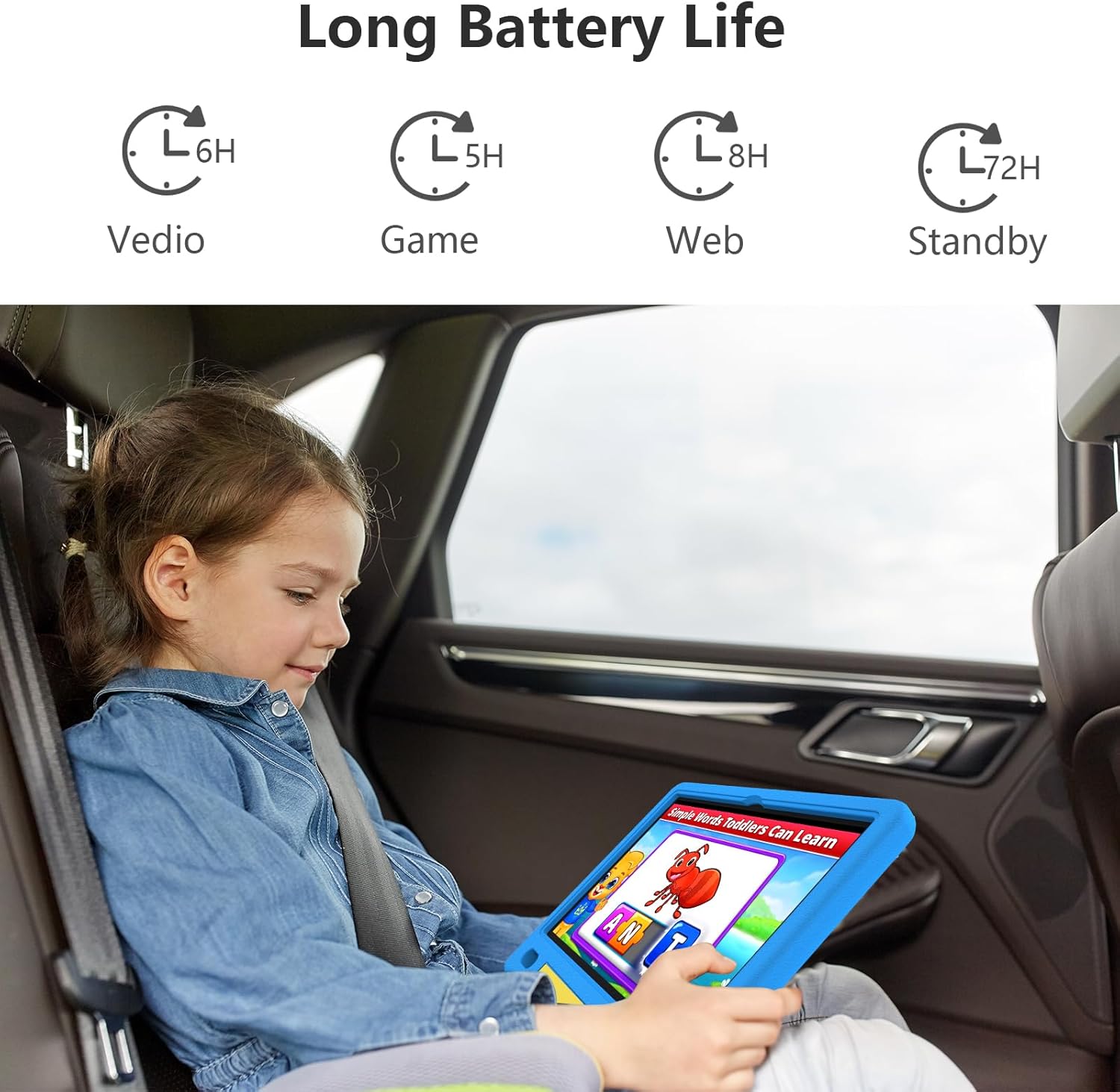 - LONG-LASTING BATTERY: Equipped with a 6000mAh battery, this children tablet supports up to 12 hours of continuous use, perfect for reading, watching, and learning on the go. Your kids can enjoy hours of entertainment without multiple breaks to recharge., making it an ideal travel companion.