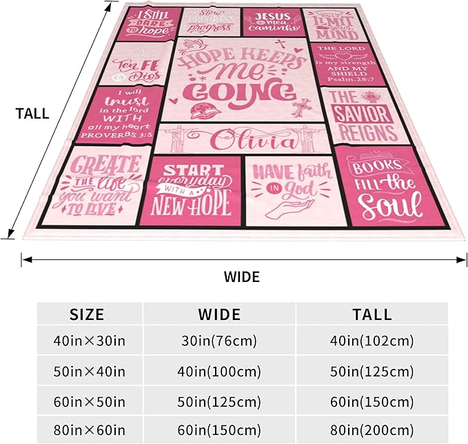 - Full of Warmth:Christian prayer blanket, Inspirational blanket, Religious throw blanket, all inspiring words provide people with strength, hope and enthusiasm for life. The custom blanket is an excellent gift for Adults, Kids, Family, Friends, Mom, Dad, Boyfriend, Girlfriend, Daughter, Son, Grandma, Grandpa, Wife, Husband, Sister, Partners.