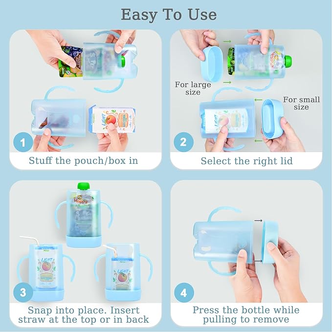 - Upgraded Details for Baby: Smooth, burr-free edges protect delicate skin. A secure lid prevents baby from opening it and the juice box from falling out. Adults can easily open it by pressing and pulling. (See manual or video). Curved handle with inner bumps provides a better grip, fostering the baby's grasping and self-feeding skills