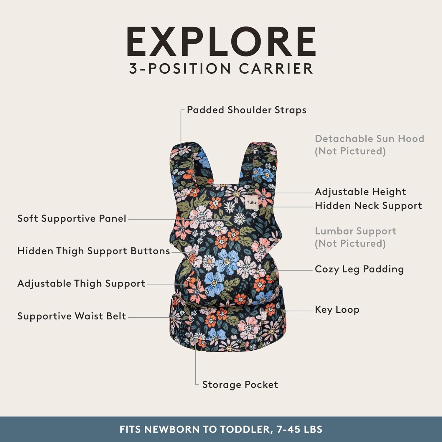 Baby Tula Explore Carriers - Breathable Baby Carrier Newborn to Toddler - Adjustable Toddler Carrier - Multiple Ergonomic Positions Front and Back - Ergonomic Fit for 7-45 lb - Mesh, Olivia