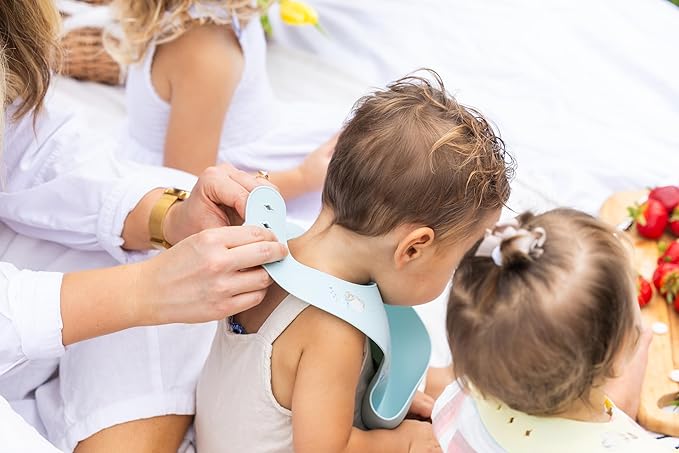 - ADJUSTABLE & COMFORTABLE BIB: The bib features a convenient adjustable neck strap, ensuring a snug and comfortable fit for babies and toddlers of all sizes. The deep, built-in pocket catches crumbs and spills, keeping your child’s clothes clean and reducing cleanup time.