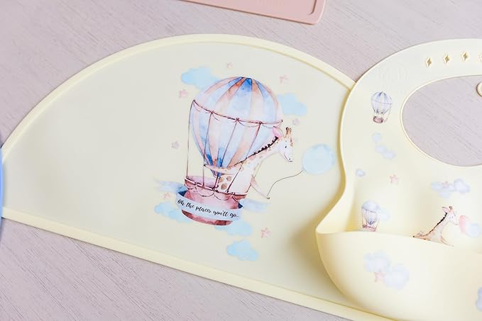 Silicone Baby Bib and Mat | Boys Girls Babies & Toddlers | Waterproof, Adjustable, BPA Free