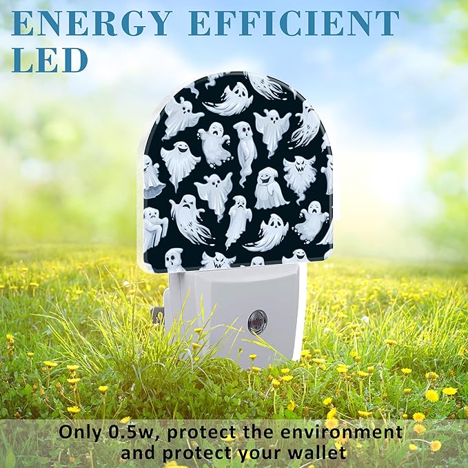- Energy Saving]: Made with high-quality plastic, this Halloween Funny Ghost nightlight has a long lifespan of over 20000 working hours without bulb replacement, and it consumes less than 50 cents annually for power consumption. Its well-designed mini outlook is space-saving and doesn't block the bottom outlet for other devices.
