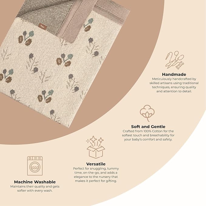 - HANDMADE QUALITY: Handmade with love, our Organic Cotton Baby Blanket reflects a level of craftsmanship that ensures durability and longevity. The use of traditional techniques and ethically sourced materials not only enhances the quality of this organic cotton blanket but also supports sustainable practices.