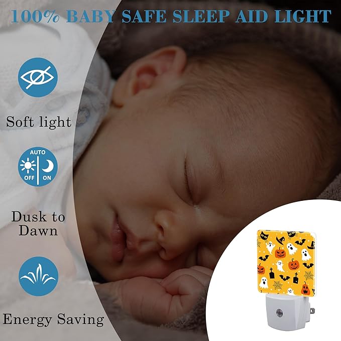 - [Night Light Socket Design]: This Halloween Pumpkin Bat Black Cat and Ghost LED night light can be directly plugged into the wall socket, which is convenient and practical. Its compact design doesn't take up much space and can easily provide soft lighting for your kids, baby room, stairs and more.