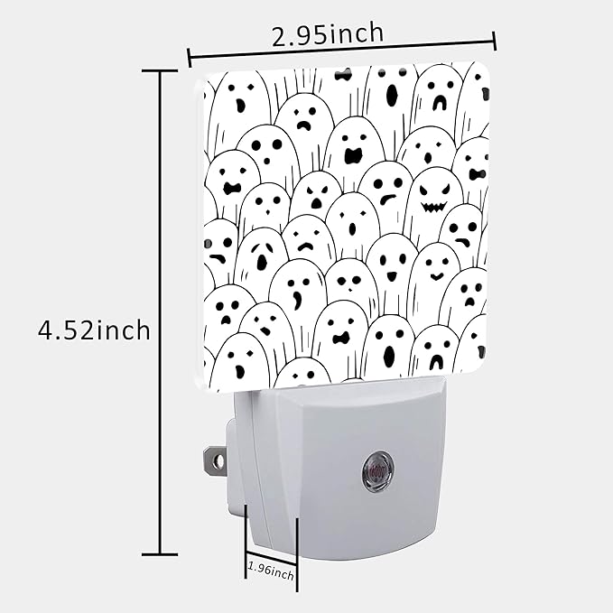 - [Night Light Socket Design]: This Halloween Funny Ghost LED night light can be directly plugged into the wall socket, which is convenient and practical. Its compact design doesn't take up much space and can easily provide soft lighting for your kids, baby room, stairs and more.