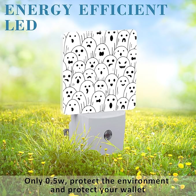 - [Dusk to Dawn Sensing]: Halloween Funny Ghost Night Light equipped with a dusk to dawn sensing function, it will automatically turn on at night or in a dimly lit environment, and automatically turn off in the morning or in sufficient light. This smart sensor design saves power and is convenient, so you don't need to switch manually.