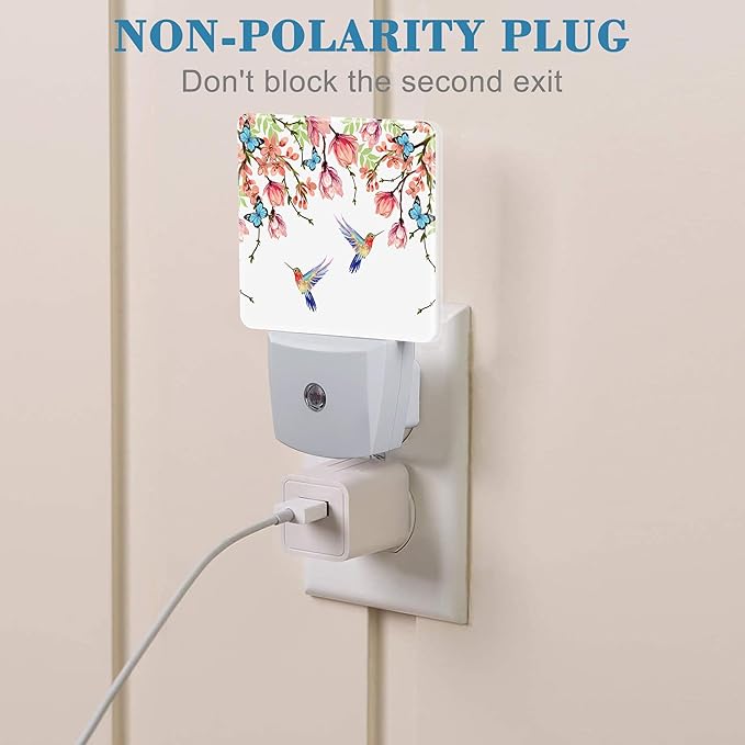- [Energy Saving]: Made with high-quality plastic, this Hummingbirds and Blue Butterflies nightlight has a long lifespan of over 20000 working hours without bulb replacement, and it consumes less than 50 cents annually for power consumption. Its well-designed mini outlook is space-saving and doesn't block the bottom outlet for other devices.