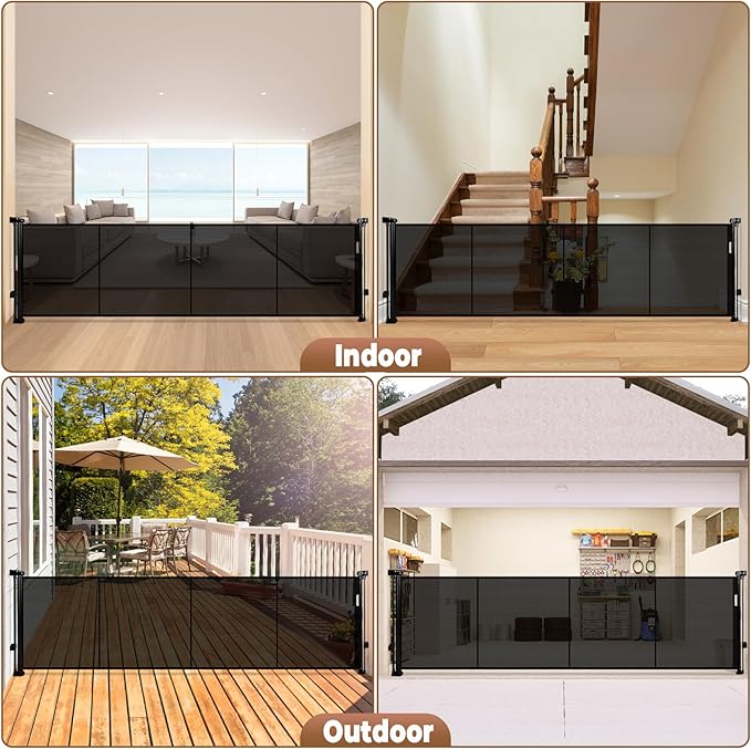 - 【41" Tall & 200.1" Extra Wide Baby Gate】41 inch extra tall door gate can keep babies or pets from climbing or jumping over it, it is also with adjustable width ranging from 0 to 200.1 inches, suitable for indoor or outdoor large openings. When not in use, the mesh can be fully retracted to save space.