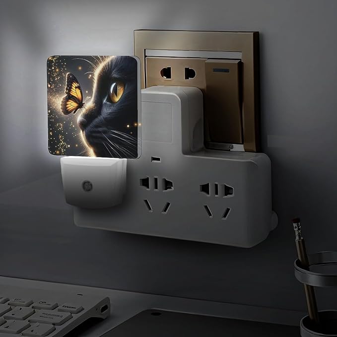 Cat Butterfly Night Light, Plug into Wall Decor Nightlights for Bedroom, Bathroom, Hallway, Kitchen, with Dusk to Dawn Light Auto Sensors LED Night Lights for Boys Girls Women Men Room Gifts