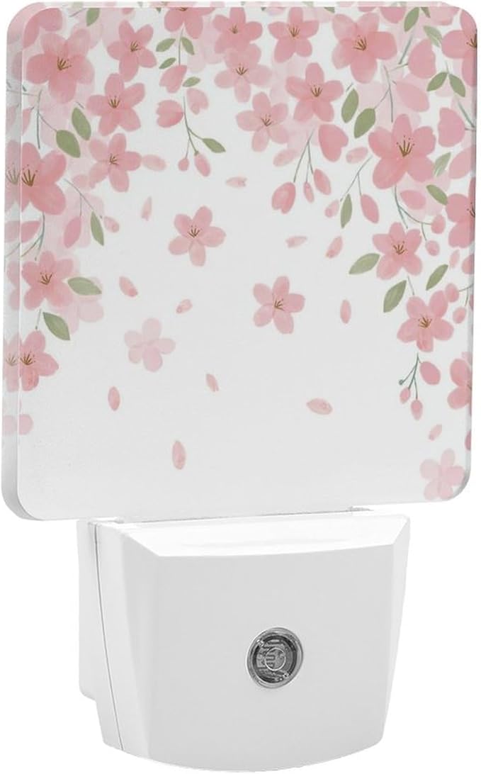 Falling Flowers Night Light, Plug into Wall Decor Nightlights for Bedroom, Bathroom, Hallway, Kitchen, with Dusk to Dawn Light Auto Sensors LED Night Lights for Boys Girls Women Men Room Gifts