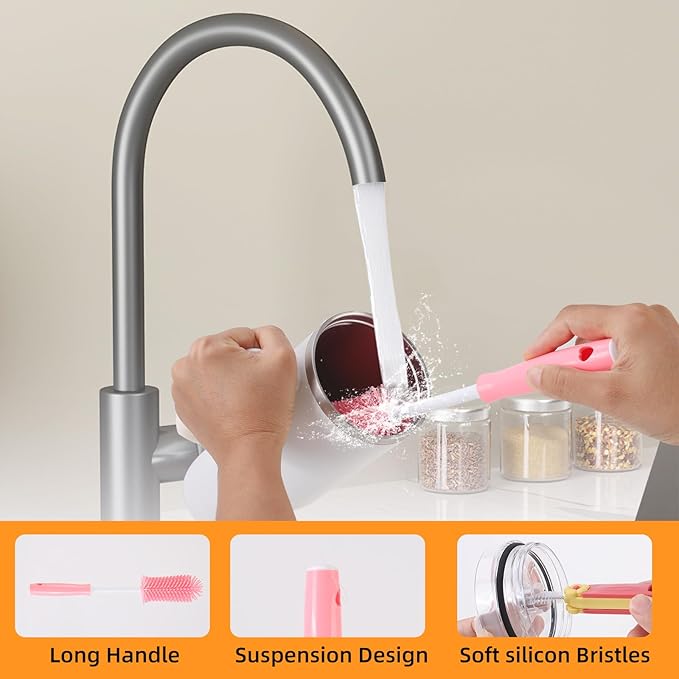 - Muiltifunctional Cup Cleaning Brush Set:U-shaped silicone bottle cup lid brush clean stubborn stains around the cup mouth.Extended straw cleaning brush diameter bristle head, long and strong enough to make it all the way through the straw and clean out the gunk.Extra-Long handle silicone brush ensuring a thorough clean without leaving any residue behind.