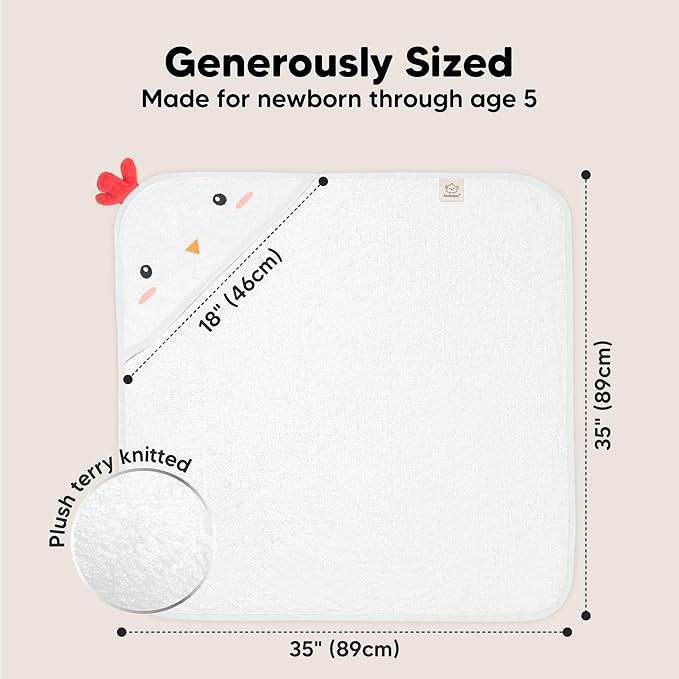 - Large and Durable Hooded Baby Bath Towels – Measuring 35" x 35", KeaBabies Hooded Baby Towels for newborn are built to be long-lasting even with repeated washes. The soft baby hooded towel can be use as your newborn grows into a toddler and up to age 5.