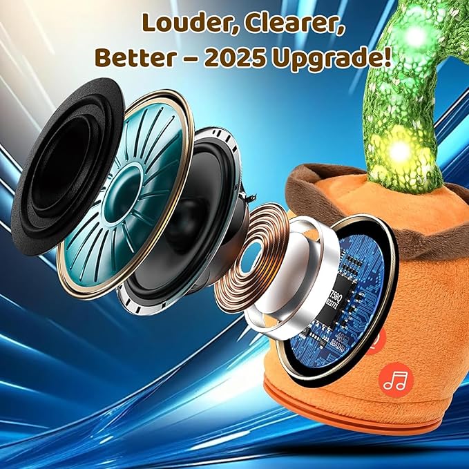 - TALKING CACTUS TOY : The dancing talking cactus toy features 120 English songs and dances along to the music. This plush cactus toy can also record and repeat what you say in a humorous and entertaining way, creating a lively atmosphere for family enjoyment.
