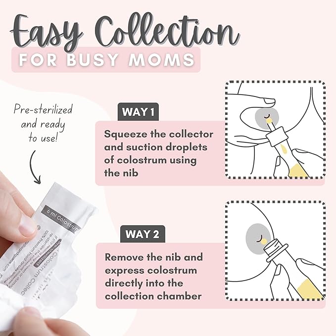 - Pre-Sterilized Collectors: Our silicone colostrum collector kit includes 7 reusable 6ml collectors. The breastmilk collector kit lets you safely express, store, and feed from the same device, offering convenience for new moms beginning at 37 weeks!