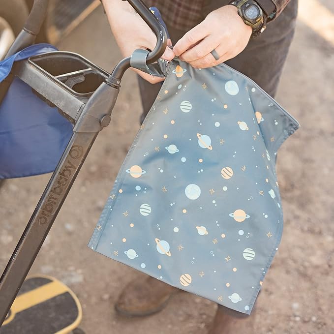 Tiny Twinkle Mess-Proof Waterproof Wet Dry Bag | 2-Pack Reusable Wet Bags for Swimsuits & Baby Clothes | Leakproof Wet Bag for Travel & Diaper Changes for Baby (Space, Ice Blue)